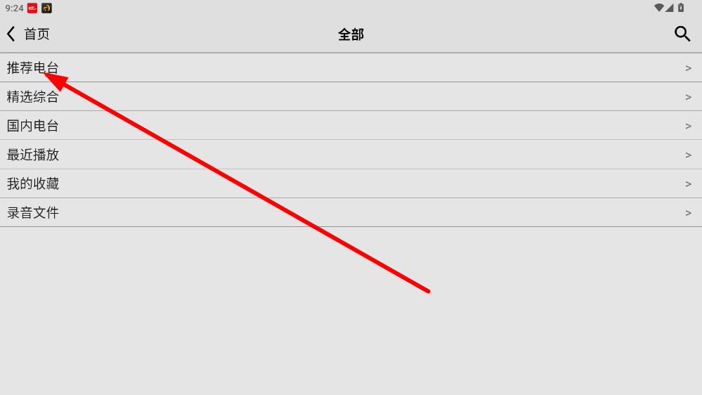 1、在龍卷風(fēng)收音機(jī)首頁,在電臺(tái)列表頁面,點(diǎn)擊推薦電臺(tái),進(jìn)入推薦電臺(tái)界面。