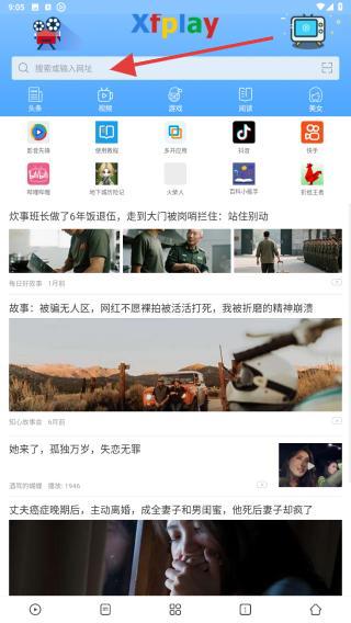 1、打開app進(jìn)入到首頁(yè)內(nèi),用戶需點(diǎn)擊搜索框輸入網(wǎng)址。