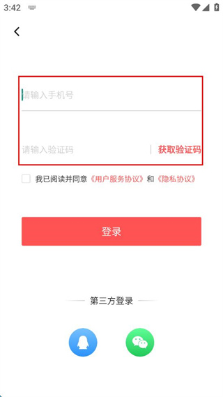 3、在登錄界面,輸入手機(jī)號(hào),獲取并輸入驗(yàn)證碼。