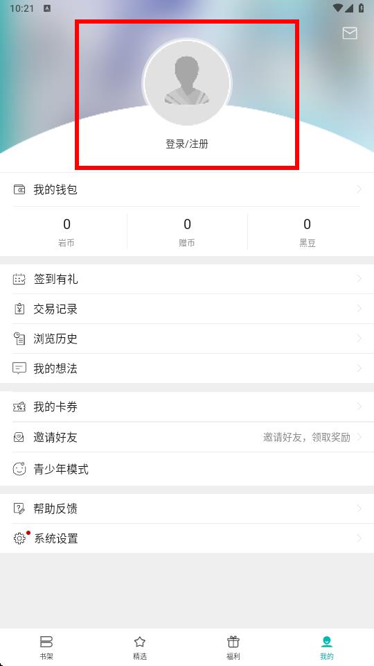 2、在我的頁面,點擊登錄/注冊按鈕。