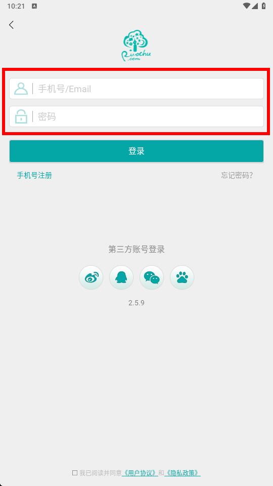 3、在登錄注冊頁面,輸入手機號/Email和密碼進(jìn)行登錄,或選擇第三方賬號登錄。