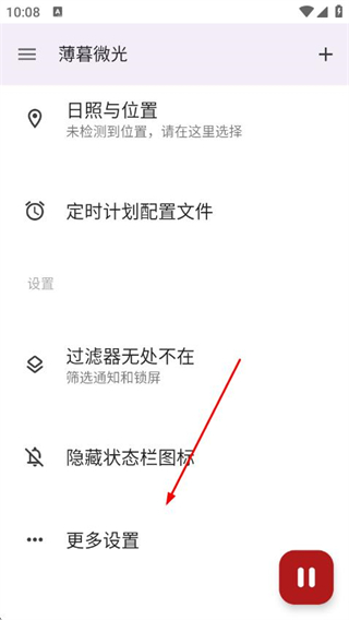 1、打開薄暮微光APP,點擊更多設(shè)置,進入設(shè)置頁面。