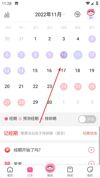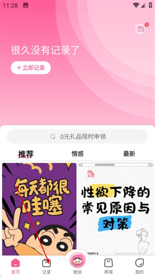 1、打開大姨媽APP,點擊底部導(dǎo)航欄的記錄。