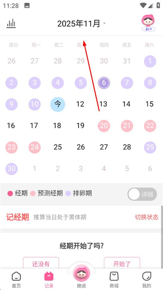 2、在記錄頁面,點擊頂部的日期區(qū)域。