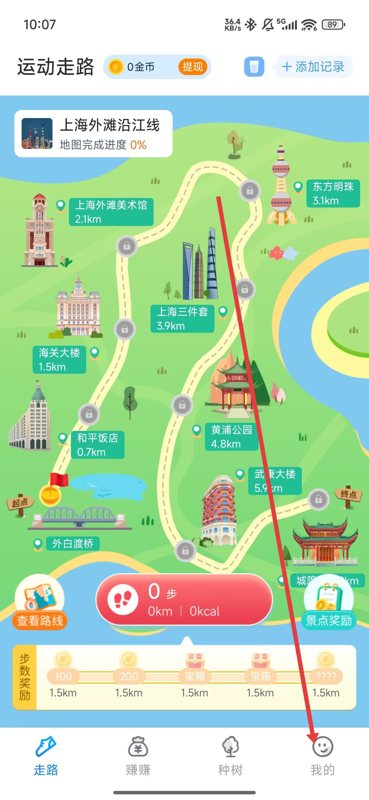 1、在全民走路計(jì)步首頁(yè)中,可以點(diǎn)擊底部我的按鈕進(jìn)入到我的主頁(yè)中。