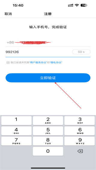 4、將收到的驗(yàn)證碼輸入進(jìn)去后,再點(diǎn)擊立即驗(yàn)證的按鈕即可。