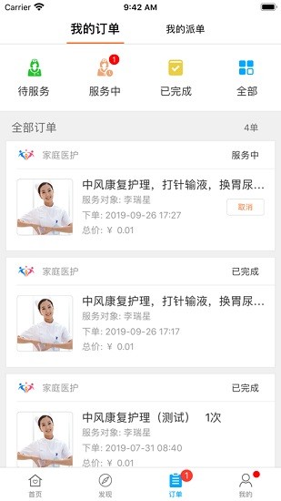 訂單的信息一目了然,可以了解訂單列表的信息,掌握患者訂單的情況;