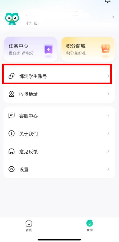 2、在我的頁面里,找到并點擊綁定學生賬號按鍵。