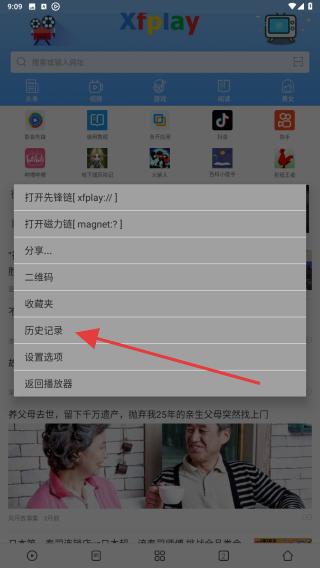 2、點擊后彈出功能菜單,在菜單中找到并點擊歷史記錄的選項。
