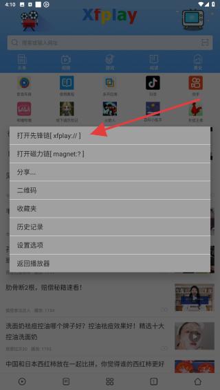 2、在彈出的菜單中,用戶需找到并點(diǎn)擊先鋒鏈接的選項。