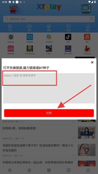 3、在彈出的輸入框中,粘貼或輸入需要打開的協(xié)議鏈接,然后點(diǎn)擊打開按鈕,即可開始加載鏈接內(nèi)容。