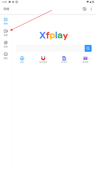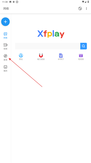 1、打開影音先鋒的APP,進(jìn)入時點(diǎn)擊左側(cè)發(fā)現(xiàn)的圖標(biāo)。