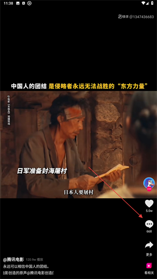 3、在短視頻播放的頁面內(nèi),點(diǎn)擊評論的氣泡圖標(biāo)。