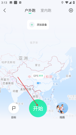 2、進(jìn)入跑步模式選擇界面,可選擇戶外跑或室內(nèi)跑,然后在新頁(yè)面點(diǎn)擊開(kāi)始。