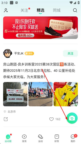 2、在運(yùn)動(dòng)圈頁(yè)面,點(diǎn)擊右下角的相機(jī)圖標(biāo)。