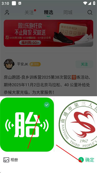4、在相冊(cè)中選擇想要發(fā)布的圖片后,點(diǎn)擊確定。
