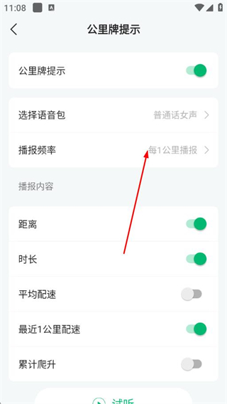 4、在公里牌提示頁(yè)面,點(diǎn)擊“播報(bào)頻率”選項(xiàng)。