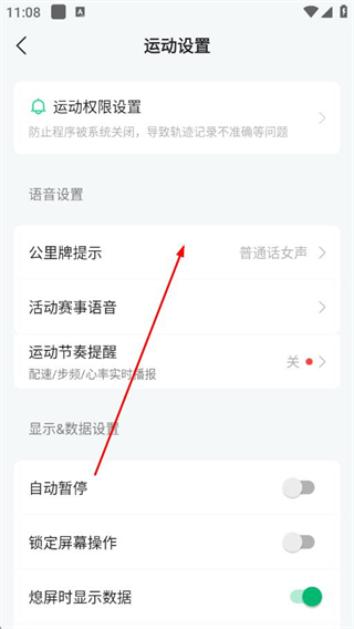 3、在運(yùn)動(dòng)設(shè)置頁(yè)面,點(diǎn)擊公里牌提示選項(xiàng)。