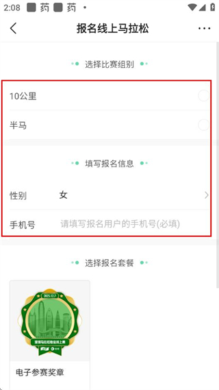 5、在報(bào)名頁(yè)面選擇比賽組別、填寫報(bào)名信息。