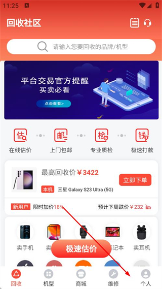 2、回收社區(qū):先打款后寄送,任性玩轉(zhuǎn)二手回收