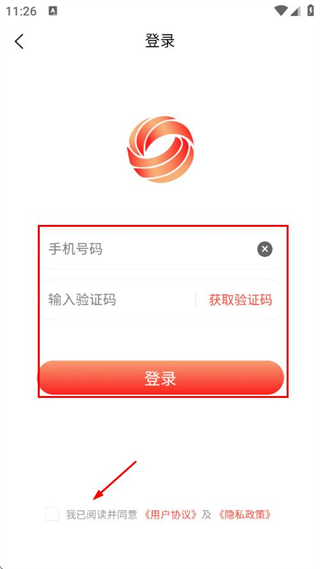 3、輸入手機號碼,勾選用戶協(xié)議,輸入驗證碼后點擊登錄。