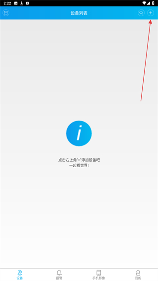 1、打開監(jiān)控眼APP,進(jìn)入首頁(yè)點(diǎn)擊右上角+的功能按鈕。