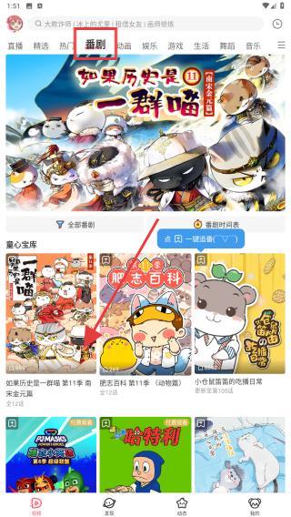 1、進入首頁,先跳轉至番劇的頁面,點擊想要觀看的視頻內(nèi)容。