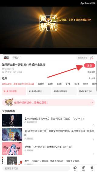 2、進入到播放頁面后,用戶想要追番的情況下可以點擊追番的功能按鈕,點擊即可。
