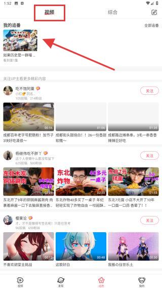 3、再返回主頁找到底部導航欄中的動態(tài),再到視頻的頁面找到我的追番查看,有顯示的情況下表示添加成功。