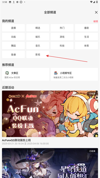 2、在全部頻道內(nèi),找到并點擊影視的功能按鈕。