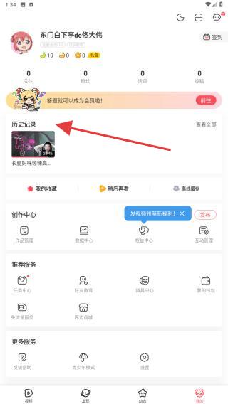 2、在個(gè)人中心頁(yè)面,下滑找到歷史記錄入口,點(diǎn)擊即可展開(kāi)全部?jī)?nèi)容。