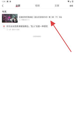 3、進(jìn)入歷史記錄頁(yè)面后,內(nèi)容按瀏覽時(shí)間倒序排列,最近觀看的視頻、文章、直播等記錄優(yōu)先顯示。