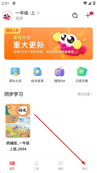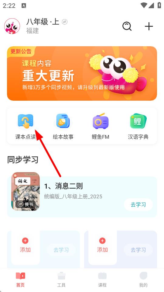 1、在鋰魚輔導的首頁,需要點擊課本點讀,進入我的書架界面。