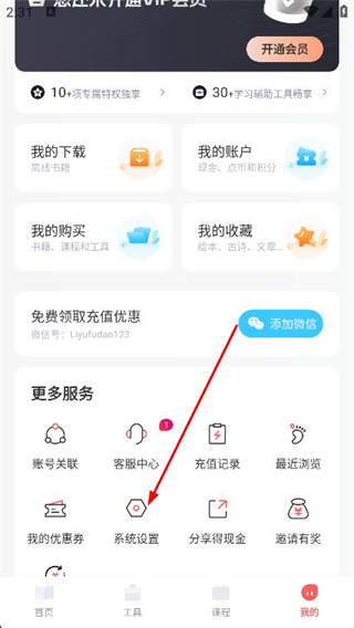 2、在我的頁面中,找到并點擊下方的系統(tǒng)設置選項。