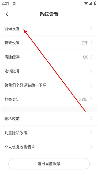 3、進入系統(tǒng)設置頁面后,找到并點擊密碼設置選項。