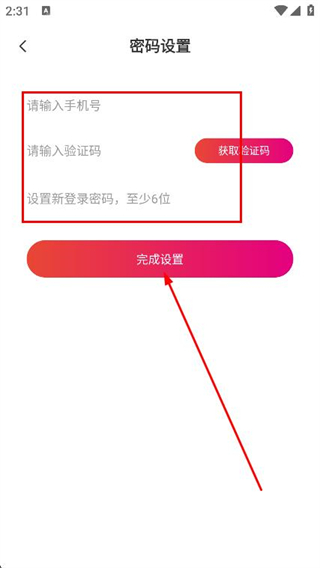 4、根據(jù)要求設置密碼,點擊完成設置,即可完成密碼修改。