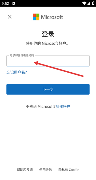 3、在Microsoft登錄界面,輸入電子郵件或電話號(hào)碼,點(diǎn)擊下一步。