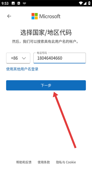 4、選擇國(guó)家/地區(qū)代碼如+86中國(guó)區(qū)域,輸入手機(jī)號(hào)碼后點(diǎn)擊下一步,按照提示完成后續(xù)登錄操作。