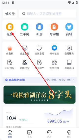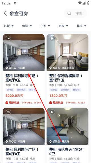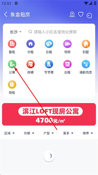 1、打開象盒找房app,點(diǎn)擊首頁的租房選項(xiàng)進(jìn)入房源列表頁面。