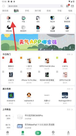 1、打開酷安APP,點(diǎn)擊底部導(dǎo)航發(fā)現(xiàn),在頂部分類欄滑動(dòng)切換至數(shù)碼頻道如首圖,進(jìn)入數(shù)碼產(chǎn)品內(nèi)的手機(jī)頁面。