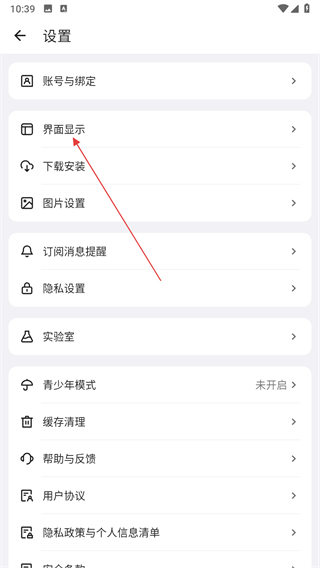 2、在設(shè)置頁面,點(diǎn)擊界面顯示選項(xiàng)。
