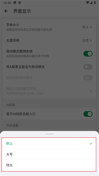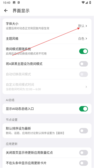 3、在界面顯示頁面,點(diǎn)擊字體大小選項(xiàng)。