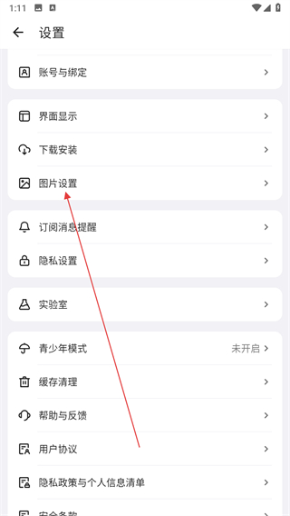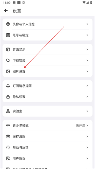 2、在設(shè)置頁面點(diǎn)擊圖片設(shè)置選項(xiàng),進(jìn)入圖片設(shè)置頁面。