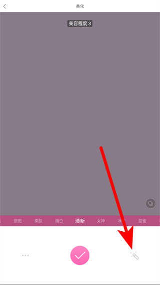 3、點(diǎn)擊右下角的編輯圖標(biāo),進(jìn)入磨皮等細(xì)節(jié)調(diào)整頁(yè)面。