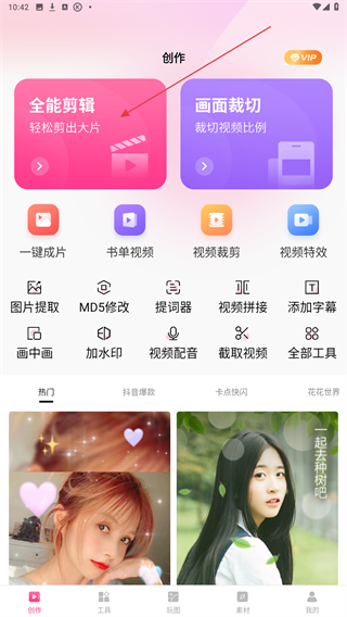 1、啟動(dòng)剪意視頻剪輯的應(yīng)用APP,在首頁上方點(diǎn)擊全能剪輯的按鈕。
