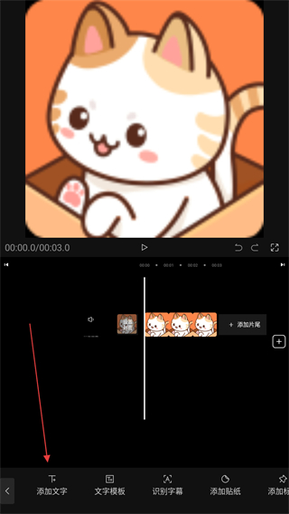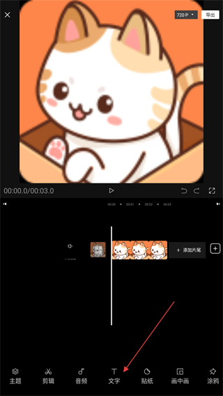 3、進(jìn)入剪輯的頁面內(nèi),用戶需點(diǎn)擊下方文字的功能按鈕。