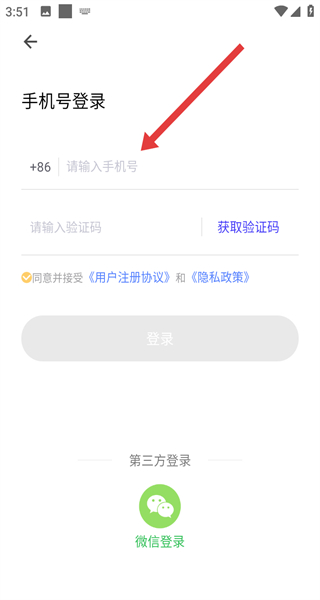 4、在登錄界面,輸入手機(jī)號(hào)碼后點(diǎn)擊獲取驗(yàn)證碼,將收到的驗(yàn)證碼輸入到驗(yàn)證碼輸入框中,點(diǎn)擊登錄按鈕,完成賬號(hào)登錄操作。