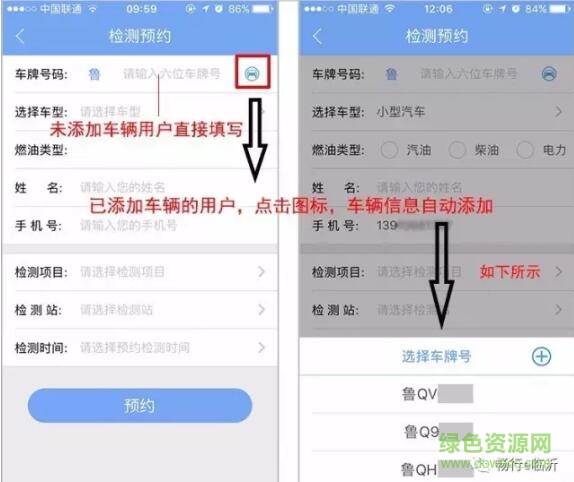 未添加車輛的用戶,直接填寫車牌等信息;已經(jīng)綁定車輛的用戶,點擊圖標(biāo),車輛信息自動添加。