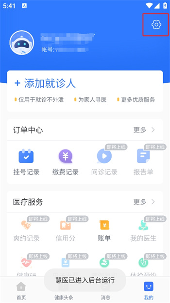 2、在自己登陸的主頁(yè)界面中,點(diǎn)擊右上角的設(shè)置圖標(biāo),進(jìn)入到各種賬號(hào)的設(shè)置中;