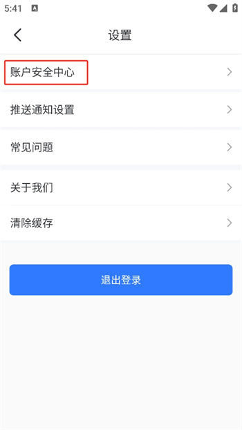 3、然后在進(jìn)入到設(shè)置的界面之后,直接就點(diǎn)擊這個(gè)【賬號(hào)安全中心】的選項(xiàng),前往關(guān)于安全賬號(hào)的設(shè)置;